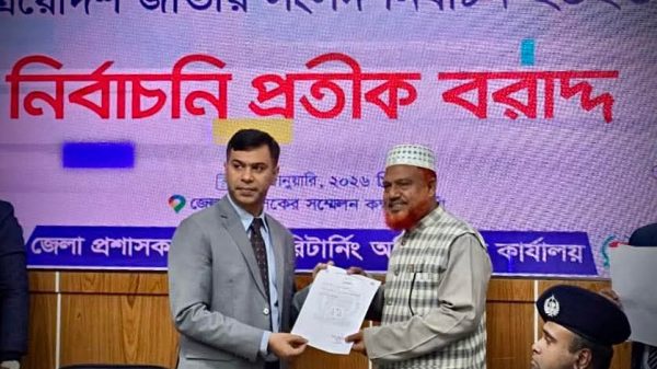 (নওগাঁ) উপজেলা প্রতিনিধি: অদ্য ২১-০১-২০২৬ ইং তারিখে নওগাঁ জেলা প্রশাসক ও রিটার্নিং অফিসারের কার্যালয়ে প্রার্থীদের প্রতীক বরাদ্দ সভা অনুষ্ঠিত হয়। উক্ত সভায় রিটার্নিং কর্মকর্তা প্রার্থীদের হাতে প্রতীক বরাদ্দ কপি