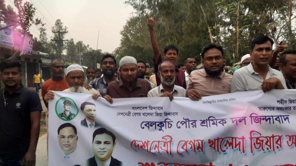 মনজুরুল ইসলাম সিরাজগঞ্জ প্রতিনিধি: সিরাজগঞ্জের বেলকুচিতে বাংলাদেশ জাতীয়তাবাদী দল বিএনপি’র চেয়ার পারসন সাবেক প্রধানমন্ত্রী দেশনেত্রী বেগম খালেদা জিয়া বাংলাদেশে আগমন উপলক্ষে বেলকুচি পৌর শ্রমিক দলের উদ্যোগে আনন্দ মিছিল অনুষ্ঠিত হয়েছে।৬