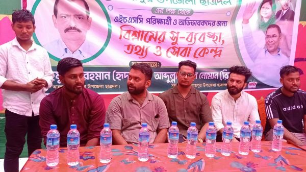 আরিফ হোসেন রুদ্র (রায়পুর,লক্ষীপুর) ২৬ জুন (বুধবার) লক্ষ্মীপুরের রায়পুর রুস্তম আলী ডিগ্রি কলেজ কেন্দ্রে অনুষ্ঠিত এইচএসসি পরীক্ষাকে কেন্দ্র করে রায়পুর উপজেলা ছাত্রদলের উদ্যোগে পরীক্ষার্থী ও অভিভাবকদের জন্য ‘বিশ্রাম ও তথ্য