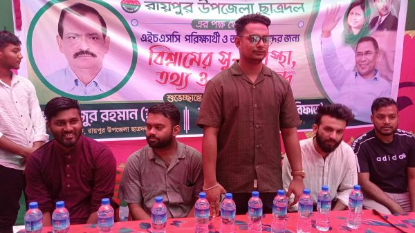 আরিফ হোসেন রুদ্র (রায়পুর,লক্ষীপুর): ২৬ জুন (বৃহস্পতিবার) লক্ষ্মীপুরের রায়পুর রুস্তম আলী ডিগ্রি কলেজ কেন্দ্রে অনুষ্ঠিত এইচএসসি পরীক্ষাকে কেন্দ্র করে রায়পুর উপজেলা ছাত্রদলের উদ্যোগে পরীক্ষার্থী ও অভিভাবকদের জন্য ‘বিশ্রাম ও তথ্য