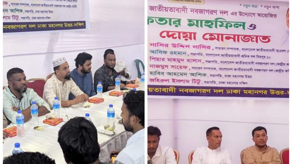 হোসাইন মৃদুল, স্টাফ রিপোর্টার ঢাকা উত্তর ও দক্ষিণ মহানগর বিএনপির বাংলাদেশ জাতীয়তাবাদি নবজাগরণ দলের উদ্যোগে শুক্রবার (১৪ ই মার্চ) ফার্মগেটের জিয়া উদ্যানে এক বিশাল ইফতার ও দোয়া মাহফিলের আয়োজন