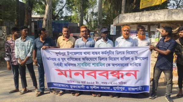 নিজস্ব প্রতিনিধিঃ রাজশাহীর দূর্গাপুর উপজেলা নির্বাহী অফিসারের বিরুদ্ধে খাদ্য বান্ধব কর্মসূচির ডিলার নিয়োগে অনিয়ম ও ঘুষ বাণিজ্যের অভিযোগ উঠেছে। অনিয়ম দূর্নীতিসহ ডিলার নিয়োগ বাতিল ও উপজেলা নির্বাহী অফিসার সাবরিনা শারমিন’কে