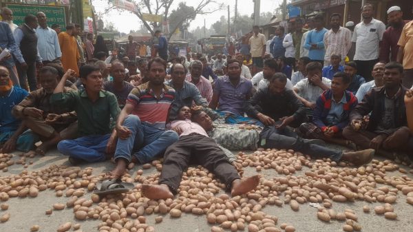 লালমিনরহাট প্রতিনিধি লালমিনরহাট জেলার হিমাগার গুলোতে আলু সংরক্ষণ ভাড়া বৃদ্ধির প্রতিবাদে মহাসড়কে আলু ফেলে এবং সড়কে শুয়ে সাড়ে ৩ঘন্টা মহাসড়ক অবরোধ করে আন্দোলন করেছে প্রান্তিক চাষিরা।