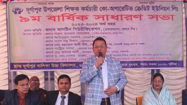 দূর্গাপুর প্রতিনিধি মোঃ জাকির হোসেন (বাবলু): শিক্ষক কর্মচারী কো অপারেটিভ ক্রেডিট ইউনিয়ন লিঃ দূর্গাপুর উপজেলা শাখার উদ্যোগে ৯ম বার্ষিক সাধারণ সভা অনুষ্ঠিত হয়েছে। আজ ২৬ই ফেব্রুয়ারি ২০২৫ দূর্গাপুর বালিকা উচ্চ