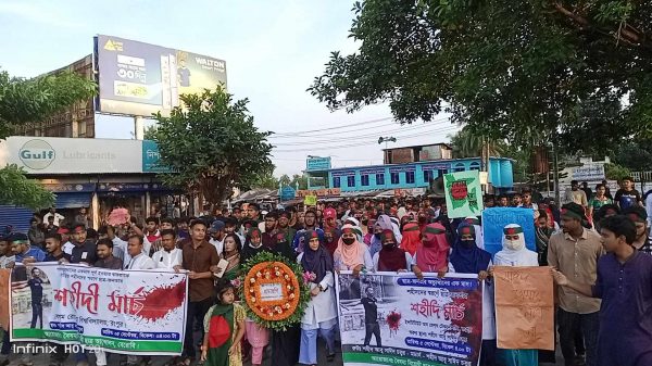 বেরোবি প্রতিনিধি:মাসরিকুল হাসান সোহেল: গণ অভূত্থানের এক মাস পূর্ণ হওয়ার দ্বারপ্রান্তে দাড়িয়ে শহীদদের স্মরণে ছাত্র জনতার শহীদী মার্চ। এতে রংপুরের বেগম রোকেয়া বিশ্ববিদ্যালয় সহ বিভিন্ন শিক্ষা প্রতিষ্ঠানের শিক্ষার্থীরা অংশগ্রহণ করে