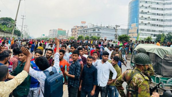 আরিফুল ইসলাম; নিউজ ডেস্ক:বেশ কিছু দাবি নিয়ে বিক্ষোভ করেন পোশাকশ্রমিকেরা। বকেয়া বেতনের দাবি, চাকরি স্থায়ীকরণ, শ্রমিক ছাঁটাই বন্ধ, নারী শ্রমিকের সমান সংখ্যক পুরুষ শ্রমিক নিয়োগসহ বিভিন্ন দাবিতে গাজীপুরের শ্রীপুর, রাজেন্দ্রপুর,