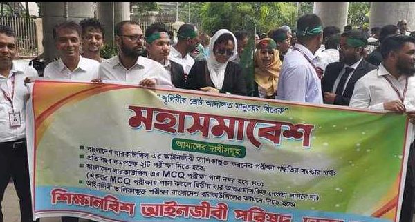 এম ফজলুর রহমান খালেদ : বাংলাদেশ বৈষম্য বিরোধী শিক্ষা নবিশ আইনজীবী ঐক্য ফোরাম এর ভারপ্রাপ্ত আহবায়ক রনি আহম্মেদ এর নেতৃত্বে বার কাউন্সিল ভবনের সামনে ৬ দফা দাবী আদায়ের লক্ষ্যে এক