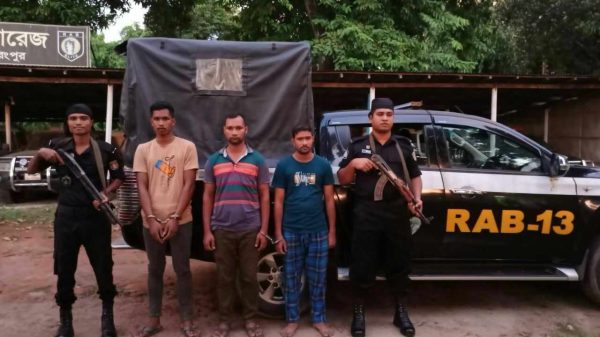 মোহাম্মদ হানিফ মিয়া,লালমনিরহাট প্রতিনিধি: লালমনিরহাটের আদিতমারীতে ৫৯৬ বোতল ফেন্সিডিলসহ ৩ মাদক কারবারিকে গ্রেপ্তার করেছে র্যাপিড অ্যাকশন ব্যাটালিয়ন (র্যাব)-১৩ এর অভিযানিক দল। বৃহস্পতিবার (২২ আগষ্ট) দুপুরে এক প্রেস বিজ্ঞপ্তির মাধ্যমে বিষয়টি