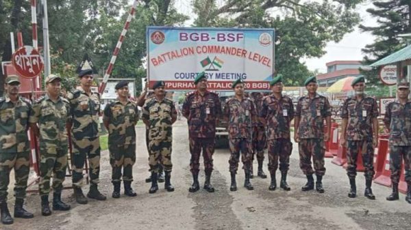 দিনাজপুরের হিলি সীমান্তে ভারতীয় সীমান্তরক্ষী বাহিনী (বিএসএফ) ও বর্ডার গার্ড বাংলাদেশ (বিজিবি) এর ব্যাটালিয়ান অধিনায়ক পর্যায়ে পতাকা বৈঠক অনুষ্ঠিত হয়েছে। আজ বৃহস্পতিবার (৩০ মে) বেলা ১২ টায় ভারতের পতিরাম বিএসএফ