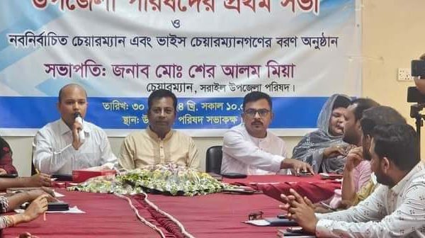 জনতার ভোটে নির্বাচিত হয়ে প্রথম বারের মত বহুল কাংখিত সেই চেয়ারে বসে প্রথম কর্মদিবস সফলভাবে অতিবাহিত করলেন সরাইল উপজেলা পরিষদের নব নির্বাচিত চেয়ারম্যান মো: শের আলম মিয়া। বৃহস্পতিবার(৩০ মে) সকালে