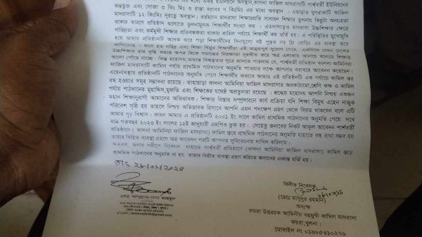 কয়রা(খুলনা)প্রতিনিধি ঃ- খুলনার কয়রায় তথ্য গোপন করে কামিল স্তরে প্রাথমিক পাঠদানের অনুমতির অভিযোগ উঠেছে। এব্যাপারে উত্তরচক আমিনিয়া বহুমুখী কামিল মাদরাসা অধ্যক্ষ ও মাদরাসা পরিচালনা কমিটির সভাপতি ইসলামী আরবী বিশ্ববিদ্যালয়ের ভাইস