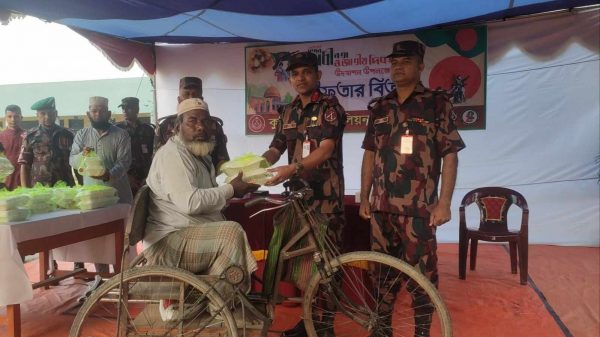 মোঃ মামুনুর রশিদ , সদর উপজেলা প্রতিনিধি,, কুড়িগ্রাম জেলা। কুড়িগ্রামে মহান স্বাধীনতা ও জাতীয় দিবস উপলক্ষে বর্ডার গার্ড অব বাংলাদেশ (বিজিবি) ২২ ব্যাটালিয়নের উদ্যোগে শতাধিক দুঃস্থ ও ছিন্নমূল মানুষের মাঝে